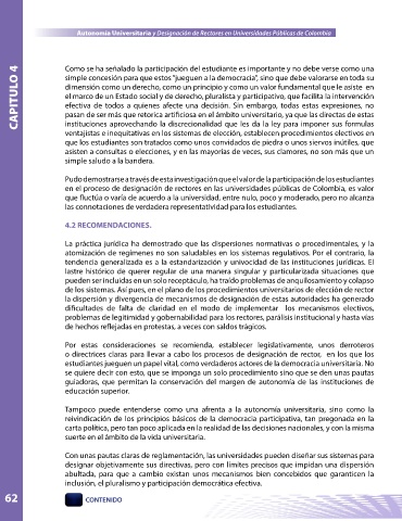 de los sistemas. Así pues, en el plano de los procedimientos universitarios de elección de rector