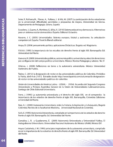 Orlenas, J. (2008) Reflexiones en torno a la autonomía universitaria. México: Universidad